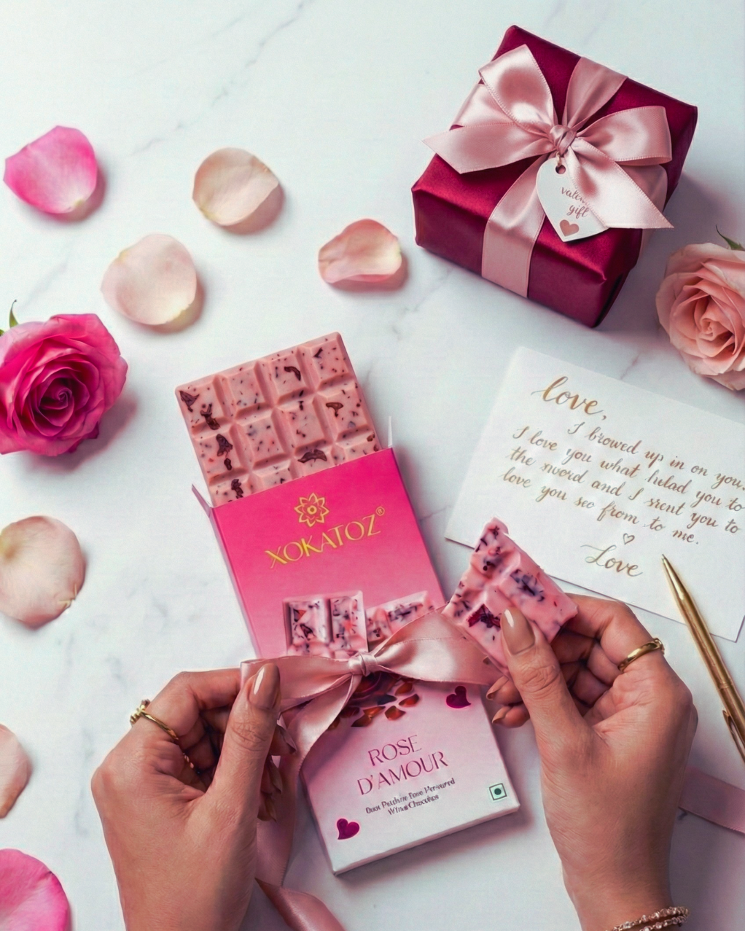 Encased in luxurious packaging, Xokatoz Rose D’Amour Chocolate is not just a treat but a statement of love and sophistication. The chocolate melts in your mouth, while the subtle rose flavour lingers, creating a sensory experience as memorable as the emotions it represents.